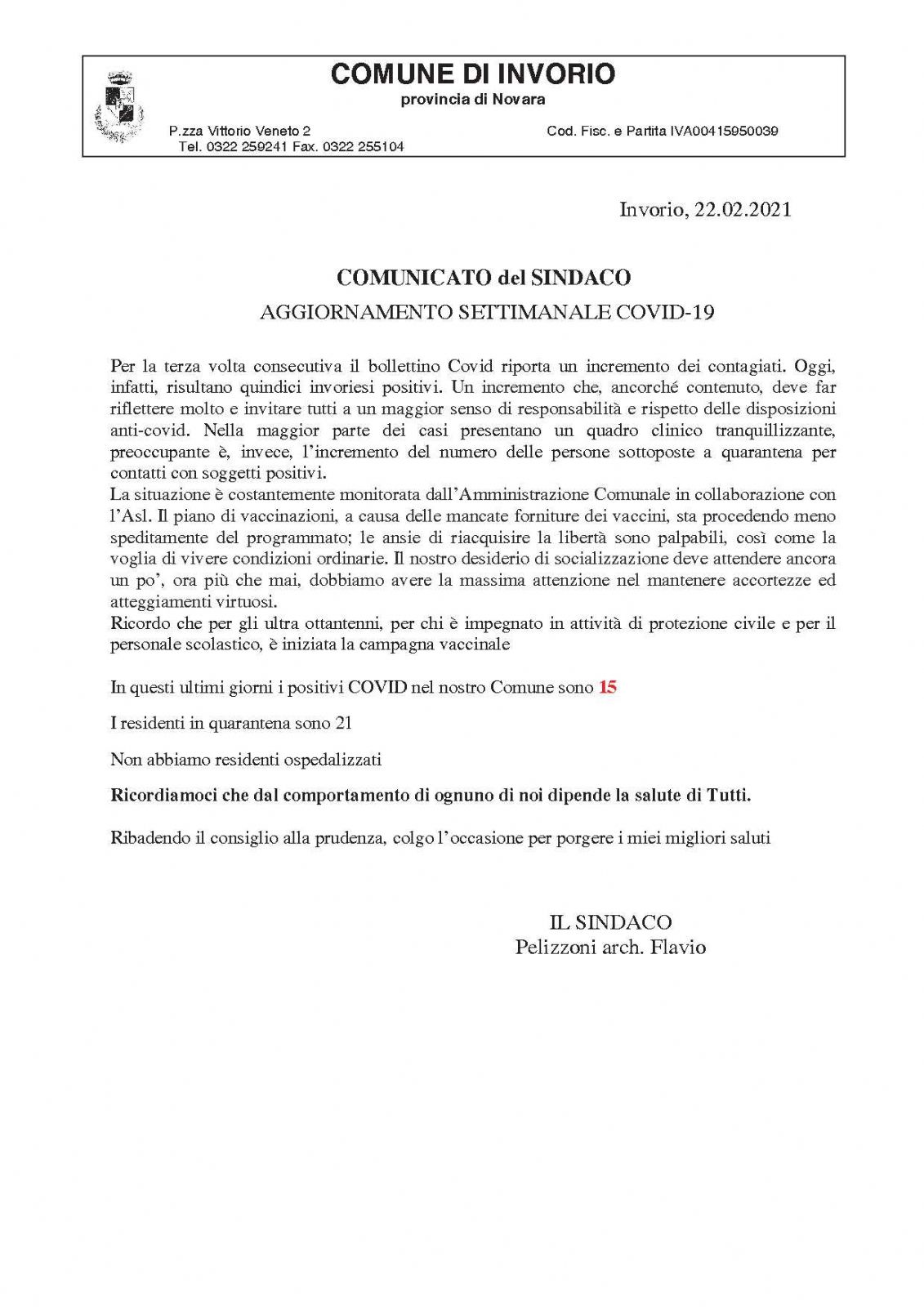 Aggiornamento Emergenza Covid-19 del 22 Febbraio