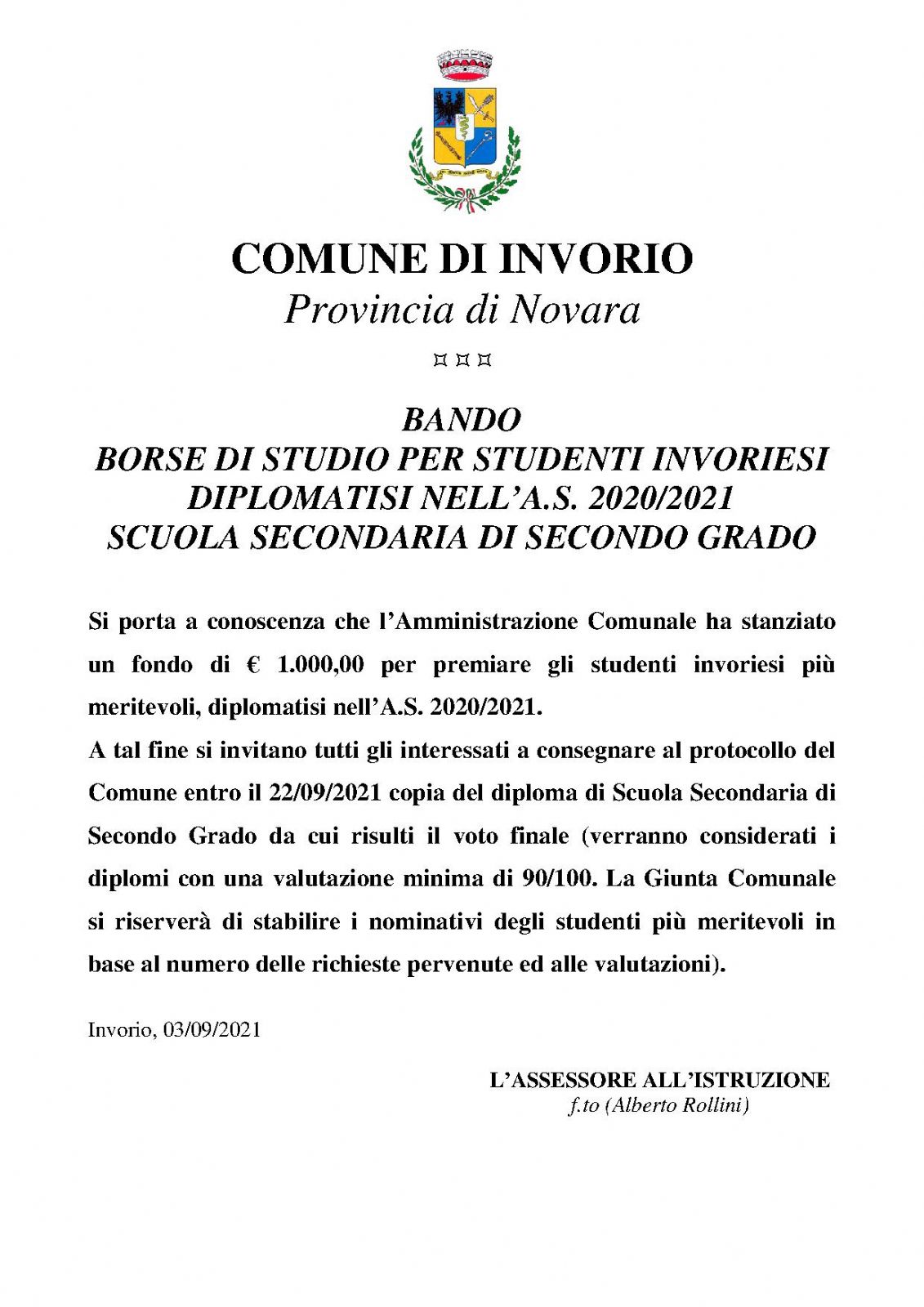 Si pubblica di seguito il bando per borse di studio AS 2020/2021 scuola Secondaria di secondo grado.