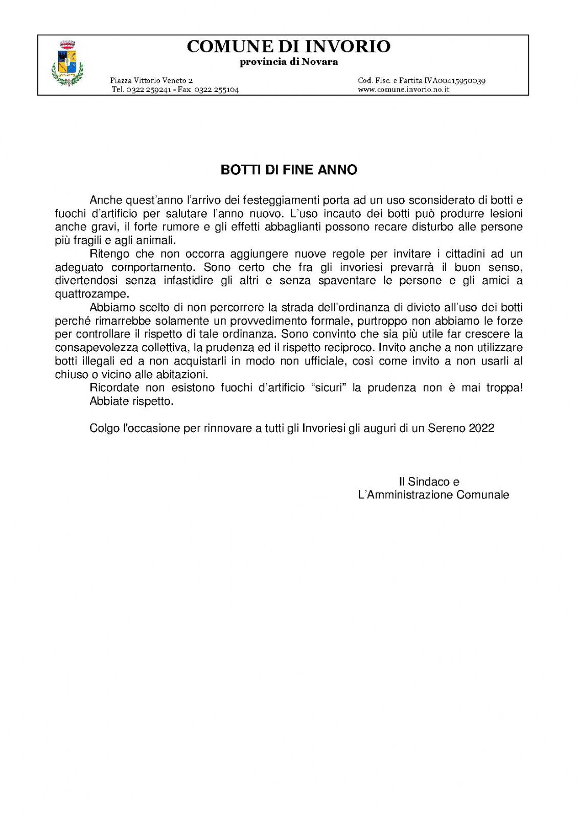Colgo l'occasione per rinnovare a tutti gli Invoriesi gli auguri di un Sereno 2022