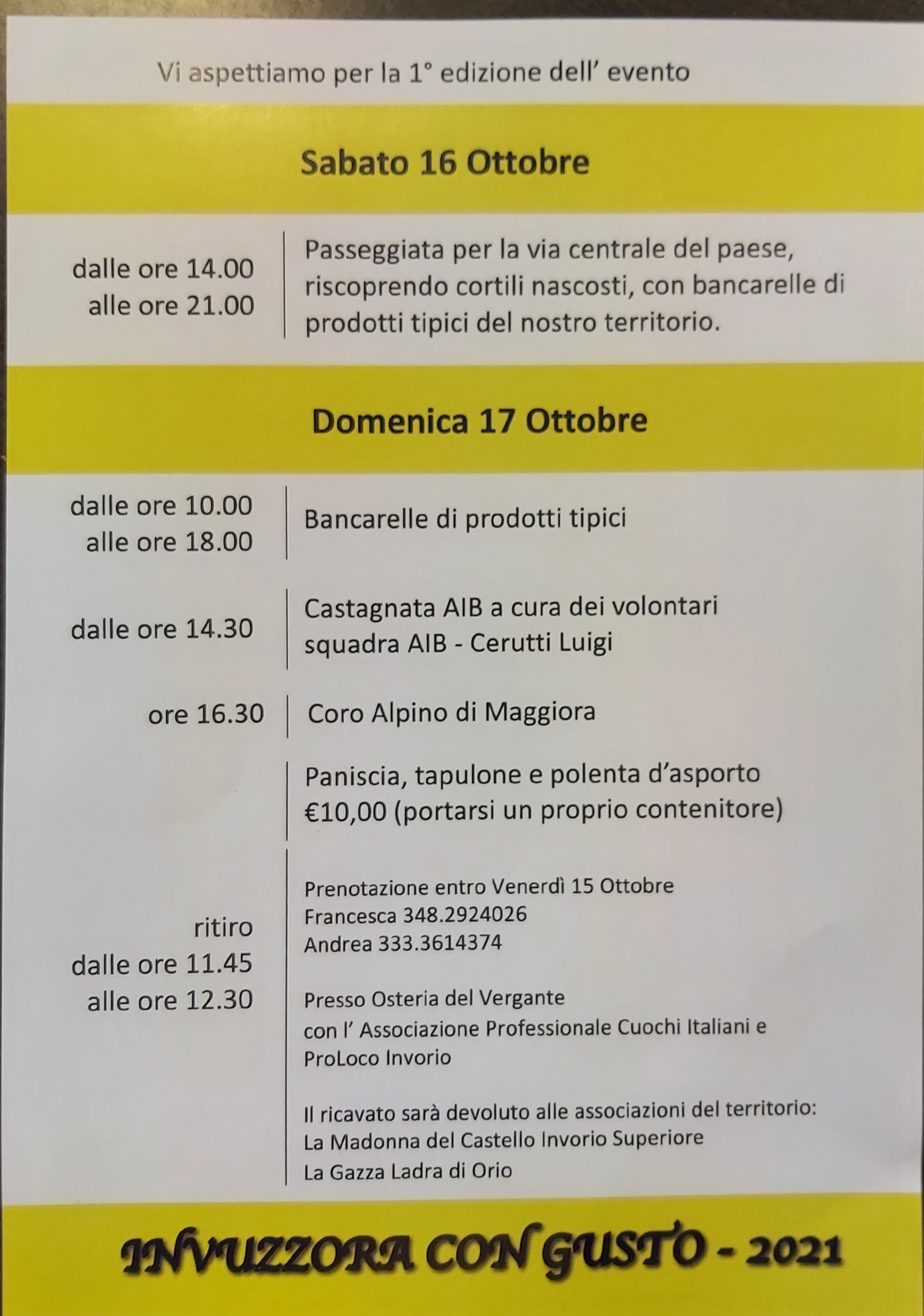 Sabato 16 e Domenica 17 Ottobre si svolgerà la manifestazione INVUZZORA CON GUSTO, passeggiata per la via centrale del paese con bancarelle di prodotti tipici del territorio.