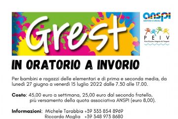 Leggi tuttoGrest estivo in Oratorio ad Invorio per bambini e ragazzi delle elementari e classe prima e seconda scuola media