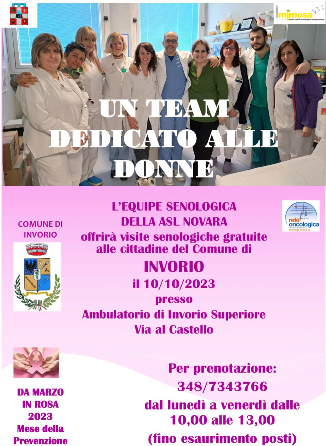 Il giorno della visita sarà presente in ambulatorio un Senologo, un’Infermiera e un Volontario della Associazione Mimosa e verrà, inoltre, distribuito materiale informativo.