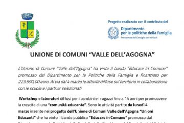 L’Unione di Comuni “Valle dell’Agogna” ha vinto il bando “Educare in Comune”