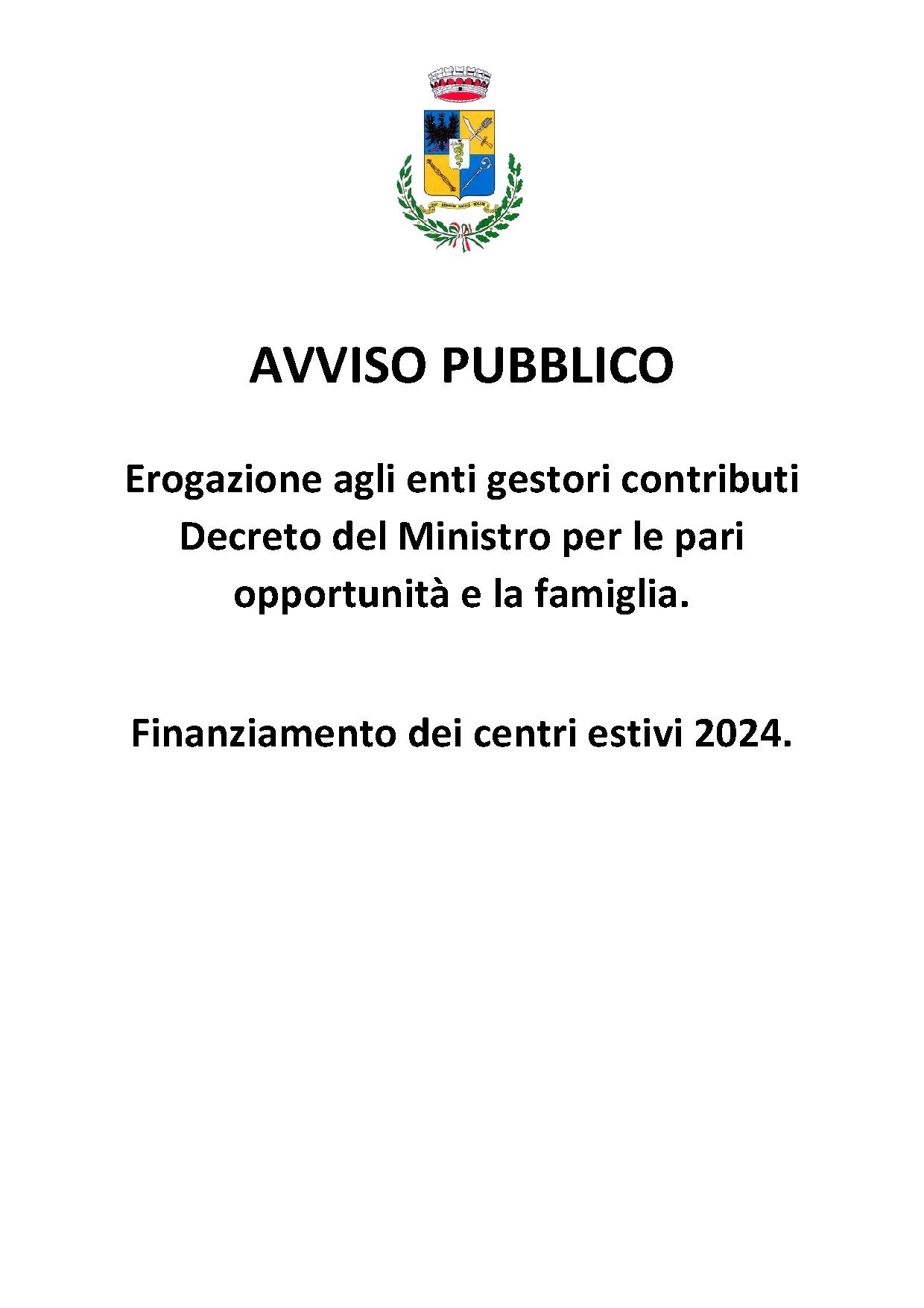 Erogazione agli enti gestori contributi Decreto del Ministro per le pari opportunità e la famiglia – Finanziamento dei centri estivi 2024.