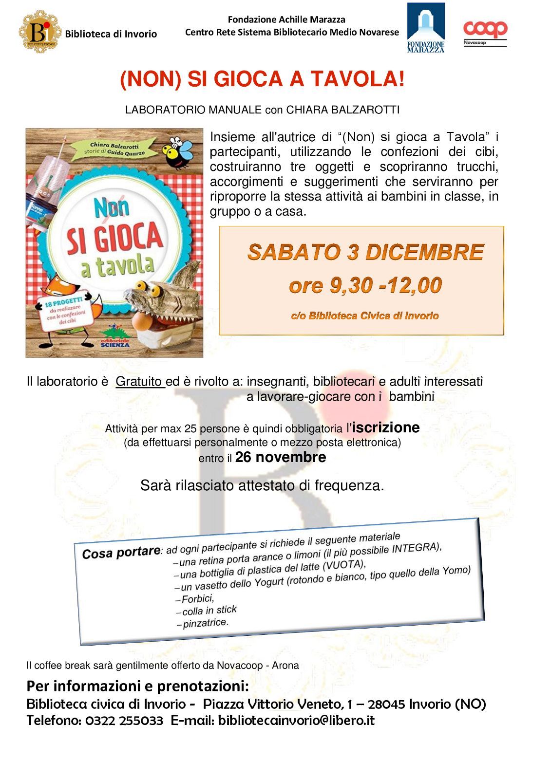 dalle 9,30 alle 12,00 c/o la Biblioteca Comunale, laboratorio manuale con Chiara Balzarotti. Il laboratorio è gratuito e rivolto a insegnati, bibliotecari e adulti interessati a lavorare-giocare con i bambini.