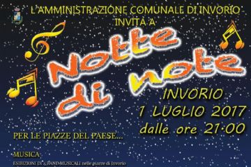 E’ tutto pronto per la seconda edizione di “Notte di note” in programma sabato 1 luglio dalle ore 21, la manifestazione nelle tre piazze del paese organizzata dal Comune di Invorio in...