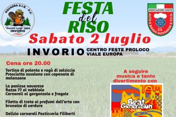 Squadra AIB e PC "Cerutti Luigi" Invorio ODV organizza la tradizionale Festa del Riso in collaborazione con l'Associazione Cuochi Alto e Basso Novarese e V.C.O. a seguire serata musicale.